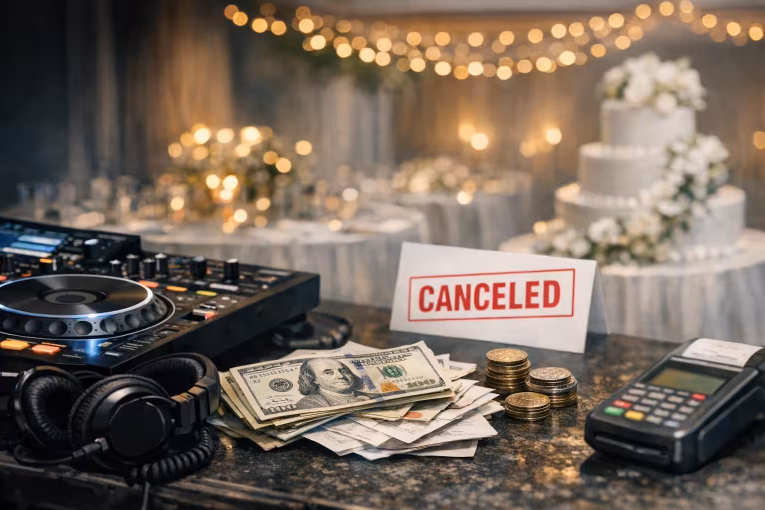 According to the reported facts, a DJ was hired for a wedding event. There was a contractual agreement between the parties regarding the performance on the event day and the payment owed for it.